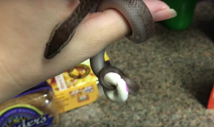 : Donut the baby African house snake holding her toy donut https://youtube.com/watch?v=ybaF7ur0Vg0 …