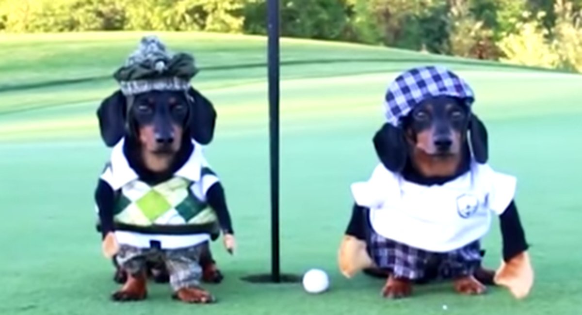 Tiny dachshunds golfing in tiny hats make for a perfect day on the course http://on.mash.to/2de7nUO pic.twitter.com/dJjixr2F4o