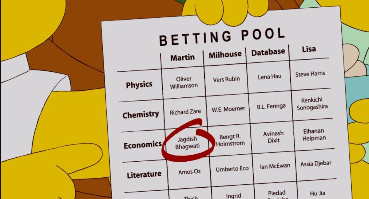 'The Simpsons' predicted this year's Nobel Prize winner for Economic Sciences http://on.mash.to/2dZ24o4 pic.twitter.com/45JMzlNRUT