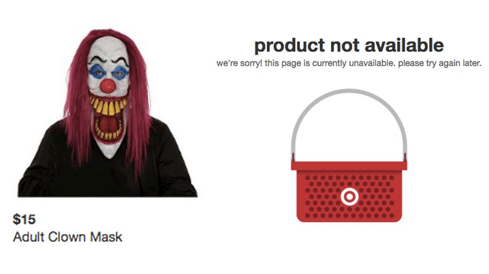 RT @mashable Creepy clown craze prompts Target to pull Halloween costumes from shelves http://on.mash.to/2dirVur pic.twitter.com/zWIHQI5b7l