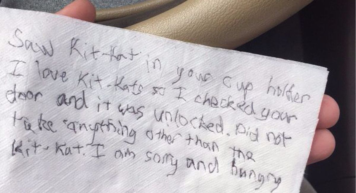 hmm. The thief that stole the timmy’s fruit explosion muffin from my car did NOT apologize.