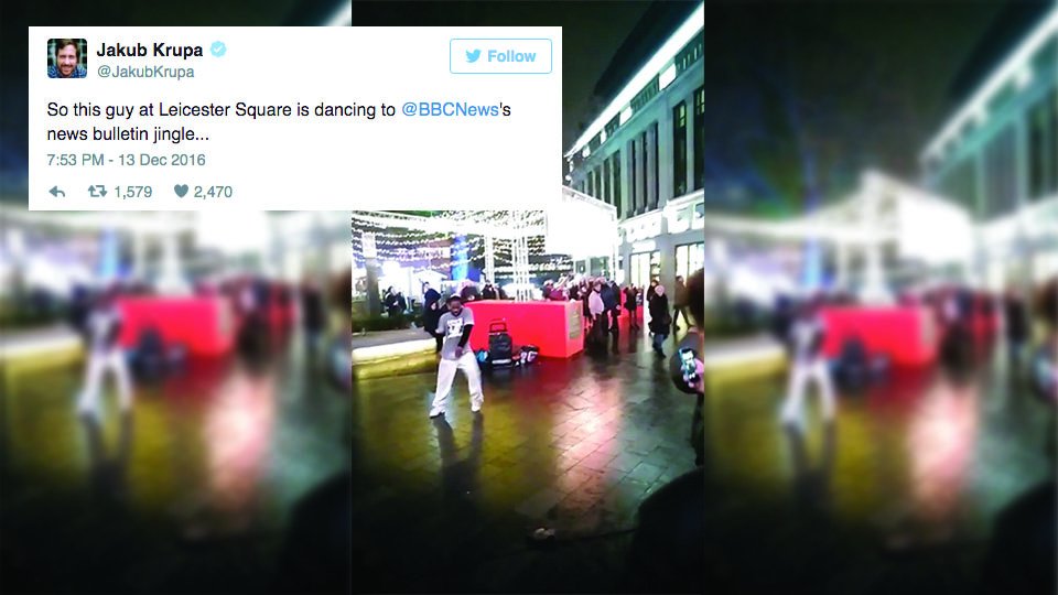 This street performer dancing to the BBC news jingle is simply glorious http://on.mash.to/2hvRMhq pic.twitter.com/HtvqDzrQIG