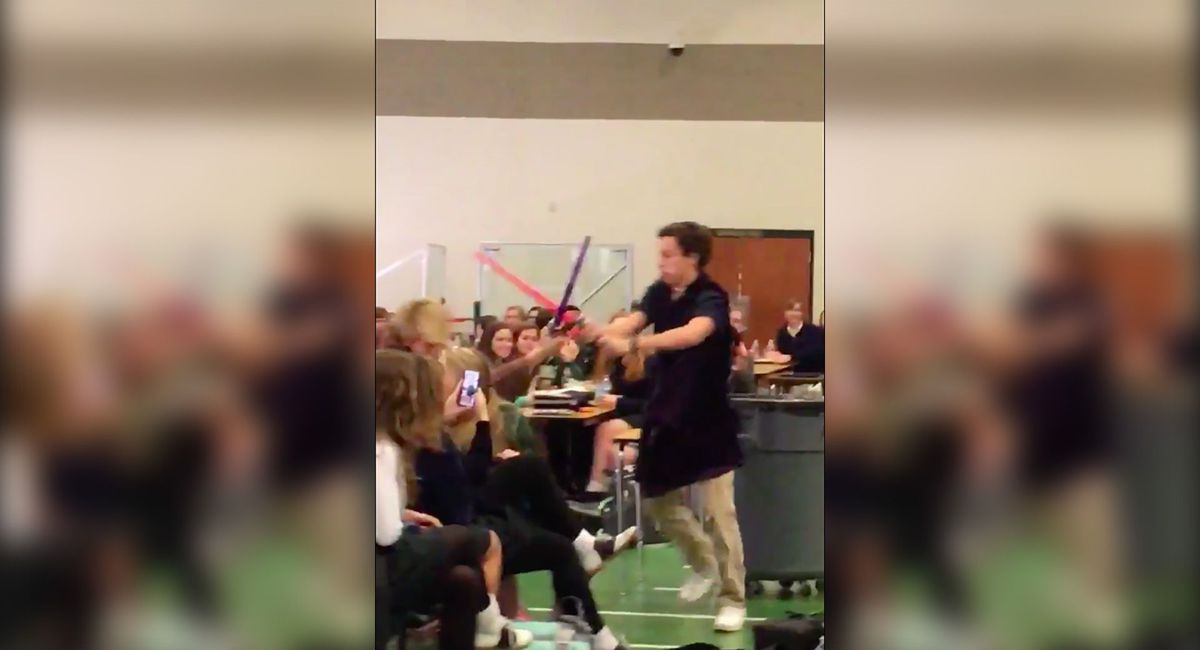 Young Jedis fight an impressive lightsaber battle in a school cafeteria http://on.mash.to/2hSeuzc pic.twitter.com/1NzbhZsNSH