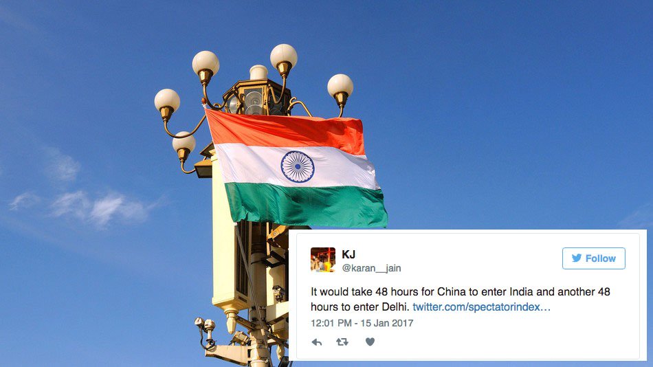 China claimed its troops can reach New Delhi in 48 hours and everyone cracked the same joke http://on.mash.to/2jBvYBy pic.twitter.com/ghtEfIuGkO