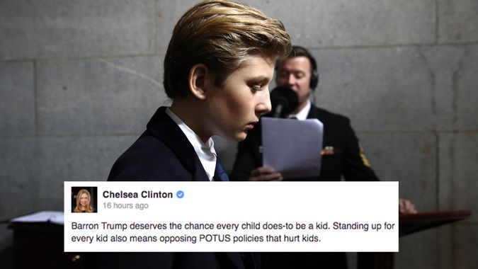 @mashable: Chelsea Clinton shuts down trolls who targeted Barron Trump http://on.mash.to/2joj6ym pic.twitter.com/AGO24HIL0a”