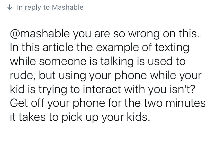 @mashable sad state when u can't put phone down for 1 minute to greet your child, perhaps they were looking forward to seeing you all dayThanks. Twitter will use this to make your timeline better. UndoUndo