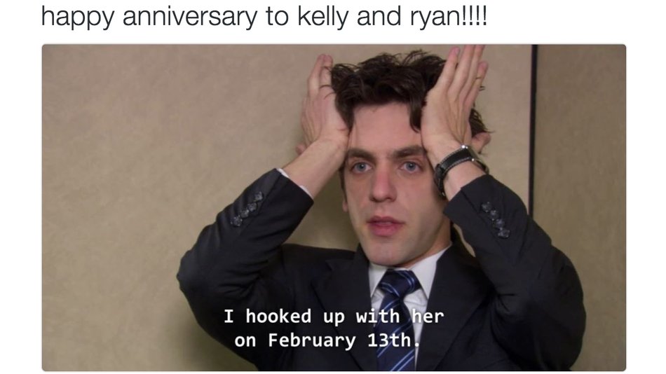 It's Kelly and Ryan from 'The Office's anniversary, and B.J. Novak didn't forget http://on.mash.to/2kkwmsx pic.twitter.com/egWN5udRNc