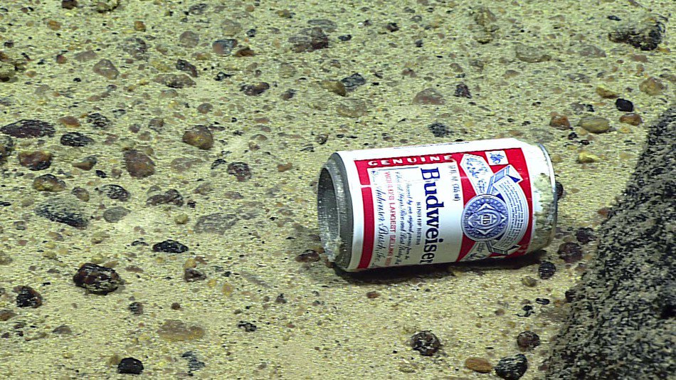 way to fake a picture.. This can would be crushed and there's no light in the deepest trenches. Probably someone's aquarium.