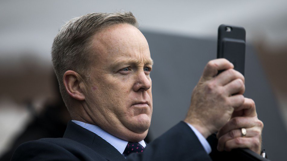 Probably fake news- Spicer would have to know how to read and use a mobile phone first.