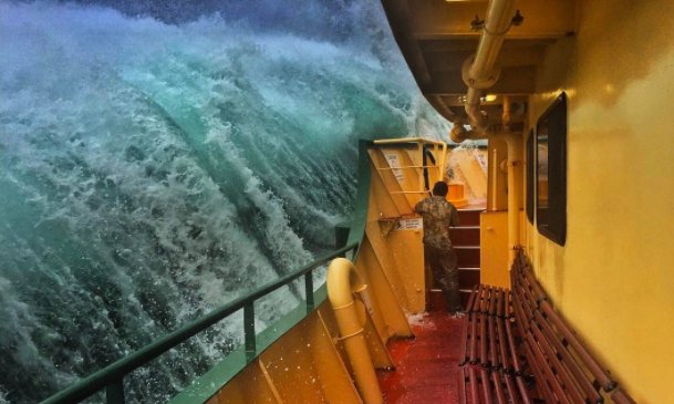 Having served in the US Navy, this looks about right. You really ought not go outboard or on deck in those kind of conditions.