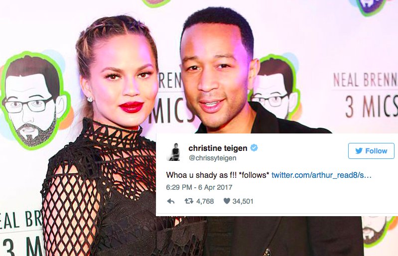 John Legend is a racist. Listen to his songs on Ferguson at BET awards. Chrissy Teigen is blind, hearing impaired or damn swim suit model?