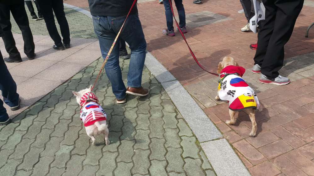 Rally supporting Pres. Park 1.Brush off: (lying)media, (corrupt)prosecutors & congress, pro-N.Korea human garbage 2. Dog is more patriotic
