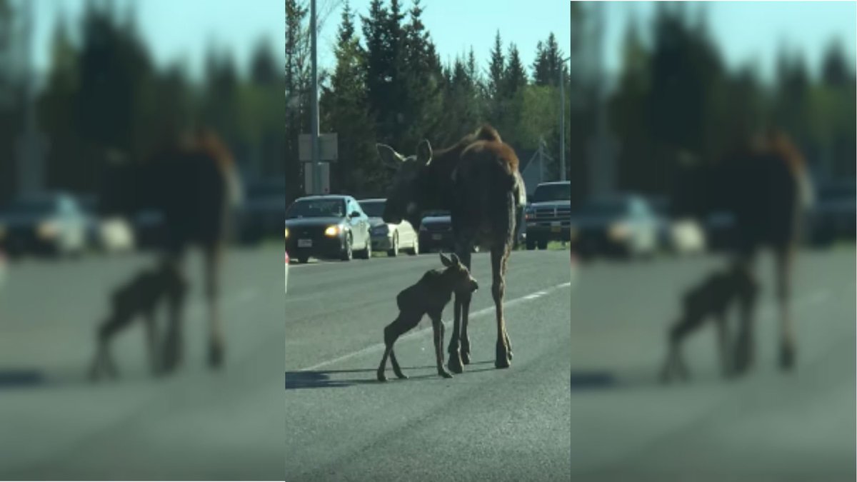 Baby moose and its mama stop traffic in Alaska. http://on.mash.to/2rwy6Oe pic.twitter.com/H6mD2Y7KP2