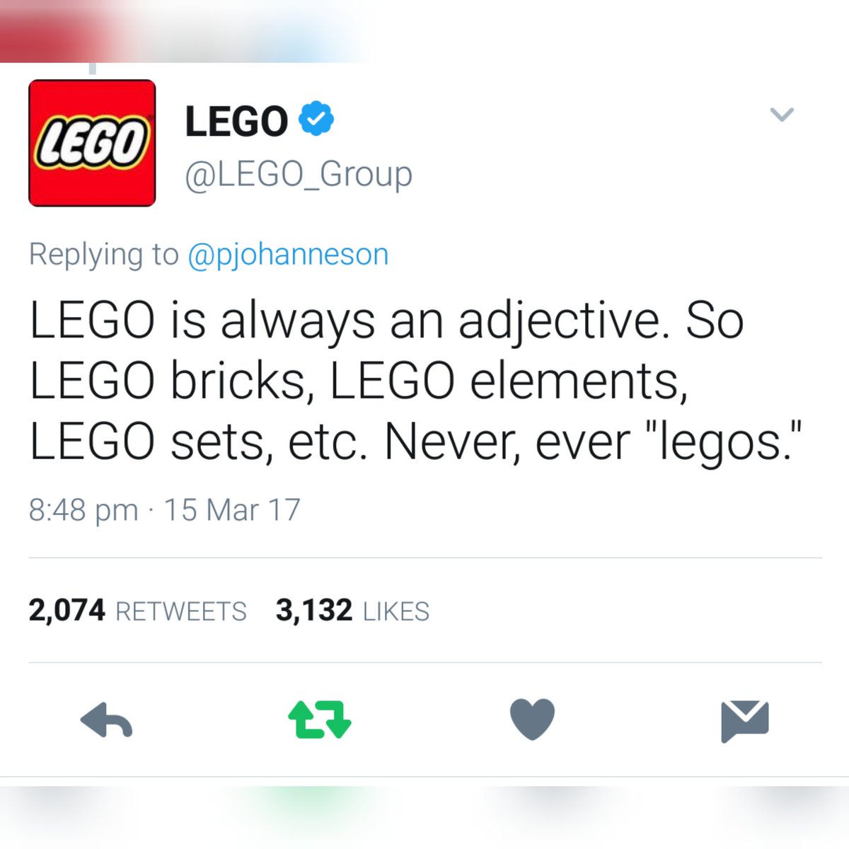 Lego, not legos.