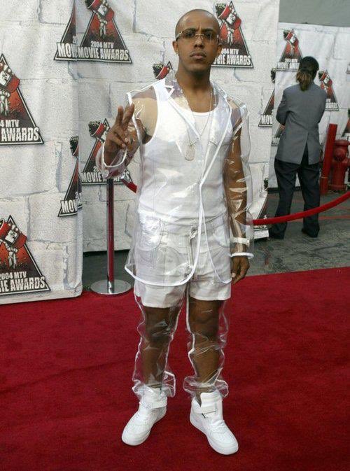 That man wearing a plastic bag