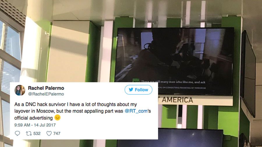 Russia's government-owned TV channel is trolling U.S. flyers at Moscow airports: http://on.mash.to/2tfyYrV pic.twitter.com/9Ya2Ae7dGN