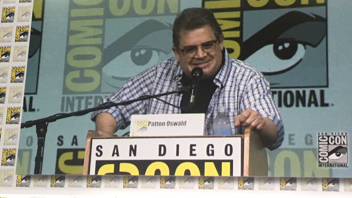 Patton Oswalt's name was misspelled at the "Stranger Things" Comic-Con panel because one job is too many: http://on.mash.to/2uU3mfM pic.twitter.com/6uGfJOOKim