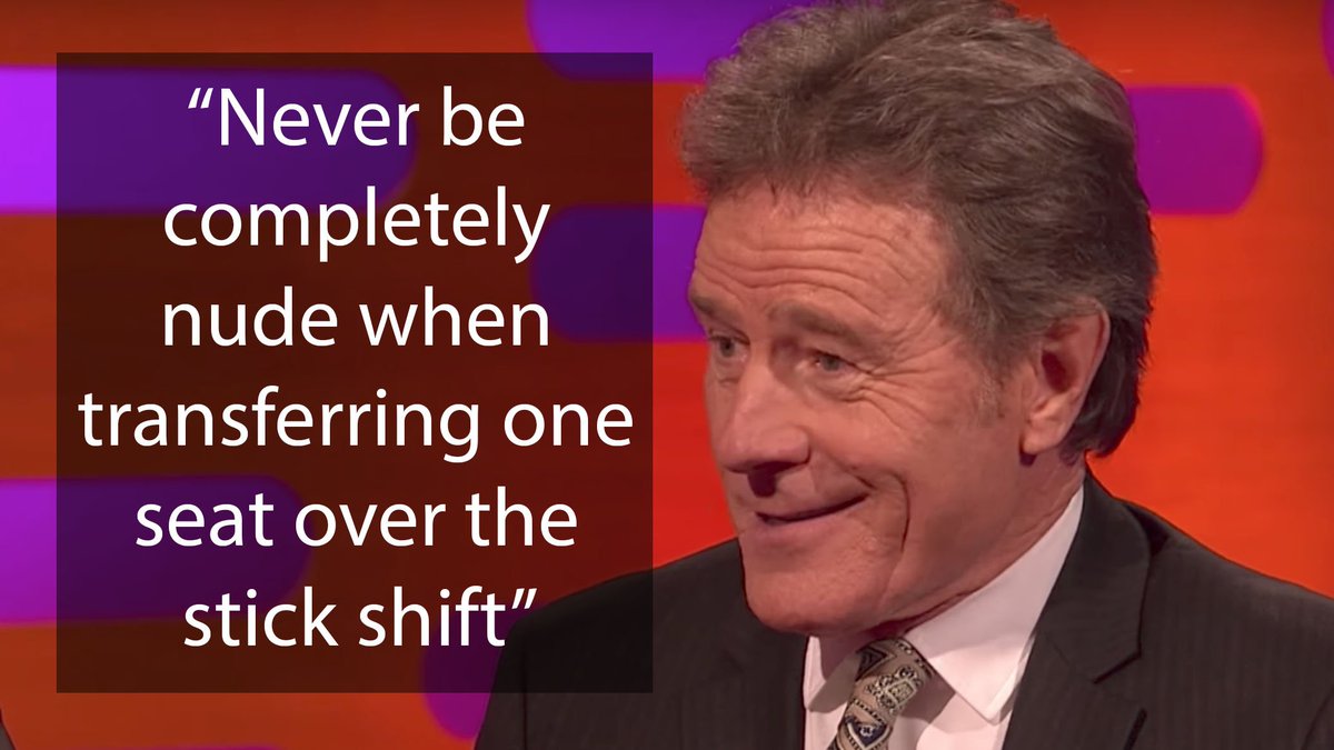 : Bryan Cranston Got Caught Having Sex In A Tunnel In The Alps | The Graham Norton Showhttps://youtube.com/watch?v=Y_IuRdyDrdM …