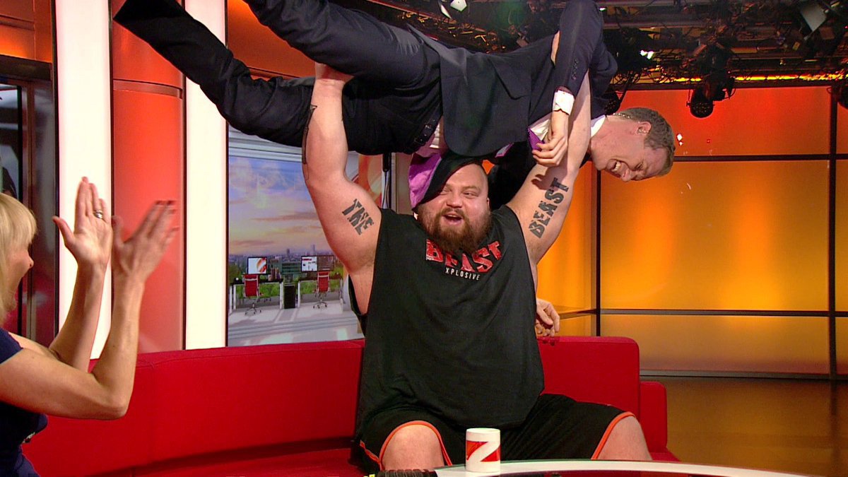 World's strongest man casually bends frying pan, lifts BBC presenter over his head http://on.mash.to/2yuZHUH pic.twitter.com/P1bt3PvCHS