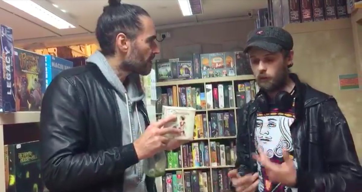 Russell Brand has a blast visiting a board game shop, only brings up entropy once http://on.mash.to/2yVhkjt pic.twitter.com/7A3v5HITlU