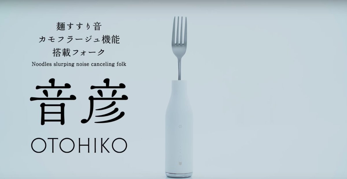 : 【音彦PV】麺すすり音カモフラージュ機能搭載フォーク「音彦」 https://youtube.com/watch?v=lxocP_Maj1Y …