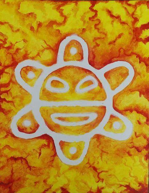 Paint for sale $50 "Sol Taíno" acrylic 20"x24". Help collect funds for Alberto Silva, dialysis patients, move him from PR to USA. DMm for info. She sells at $10,000 and we need the same to move him rush. Ironic.pic.twitter.com/HL0io989OB