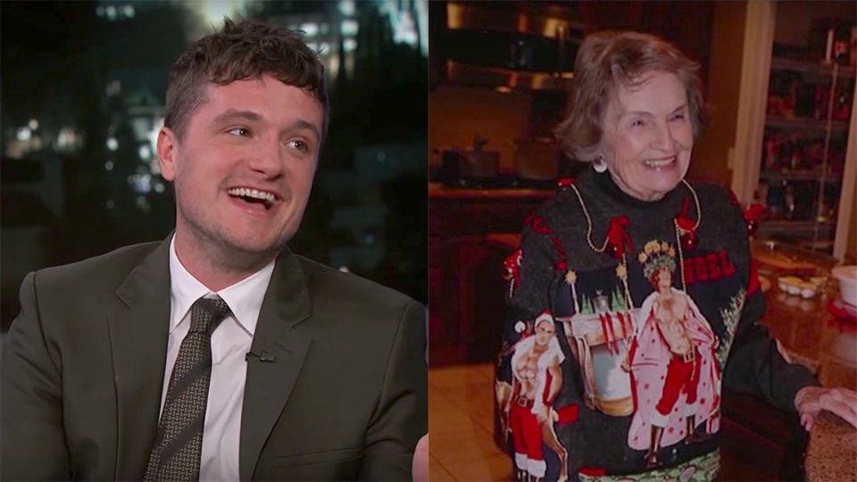 Josh Hutcherson went on Jimmy Kimmel Live and revealed that his great grandmother knits the most NSFW sweaters. The level of detail is incredible. She is WAAAAYYYY cooler than all of us http://on.mash.to/2jhMb3f pic.twitter.com/xDcUxpS3bx