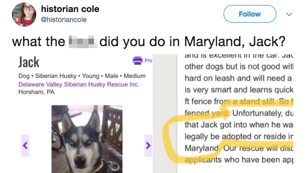 Jack is a good doggo. But what did Jack do to get banned in Maryland? The internet demands answers. http://on.mash.to/2AfSN8L pic.twitter.com/wmzGloK8kk