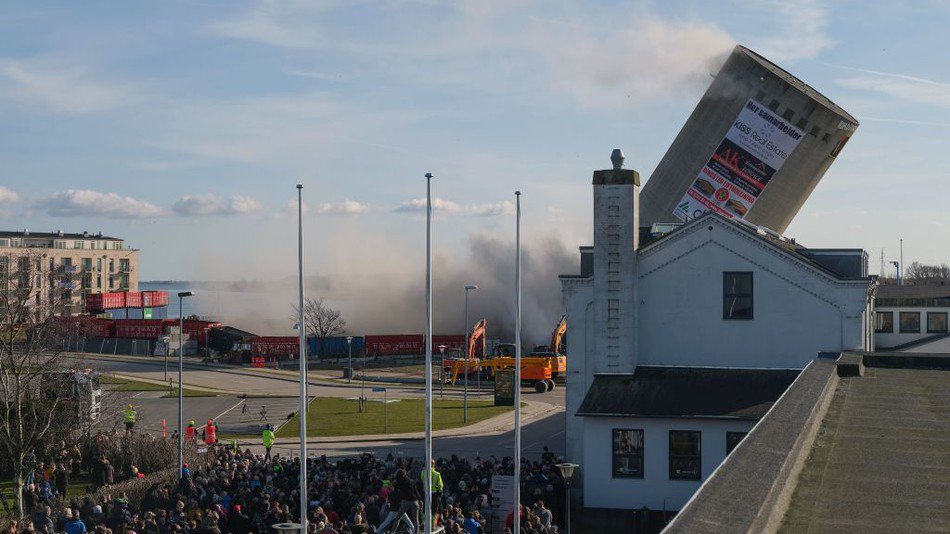 : Sprængning af 53 m. høj silo i Vordingborg går "skævt" / Demolition of silo in Denmark goes wrong.https://youtube.com/watch?v=yJ1spWfaSgc …