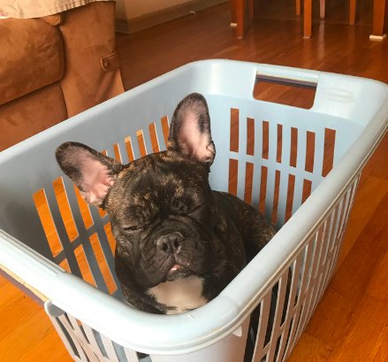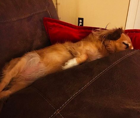 This is Ollie! He is missing his middle teeth so his tongue sticks out when he is sleeping. A legend