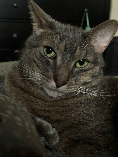 Here is Fenby, the #1 cuddliest rescue cat. He enjoys rummaging through the garbage for receipts to fetch. So resourceful A+