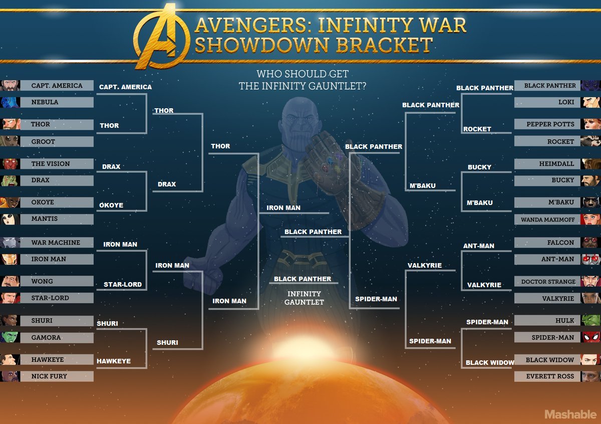 #InfinityWar is almost here. Which hero would you want to rule the universe? https://on.mash.to/2Hpth1B pic.twitter.com/2k5L9MUp2a