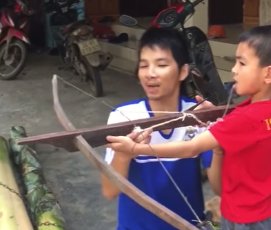 Why do children have a cross bow, and who the hell is filming this?