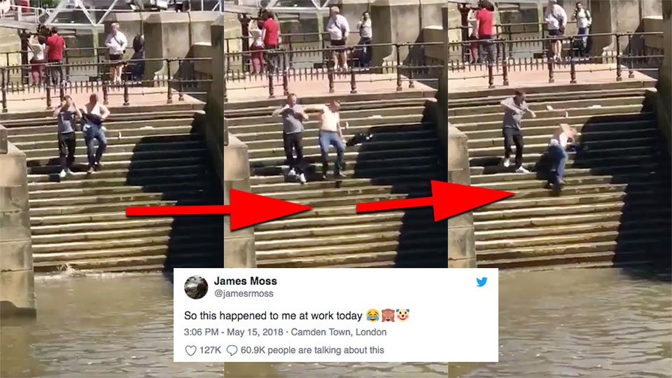 Man slowly tumbles into river in undeniably hilarious footage https://trib.al/DGJ6arj pic.twitter.com/dEjOnkQTQc