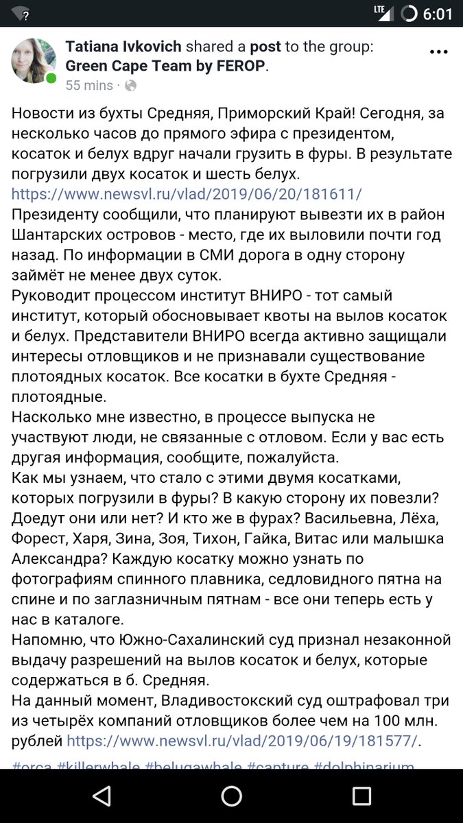More from orca researchers who were not invited to observe the release today: the animals weren't fed or rested after 7 day journey. The pair may be old enough to hunt but some remaining orcas are not. That's why all should have been freed together. https://www.facebook.com/olga.filatova.9216/videos/2475034762560750 …