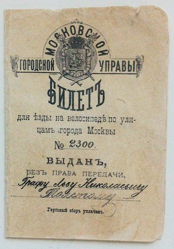 Leo Tolstoy learned to ride a bike at 67 after buying an English-made Rover bicycle. Back then you needed a license to operate one in Moscow and he passed the test even though he kept knocking women off their bikes while practicing.pic.twitter.com/PDm0A1PAvi