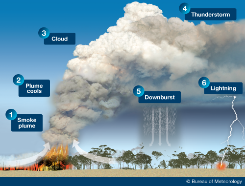 Fire Weather Explained Credit: Bureau of Meterology/AU Bushfires can create their own weather, generating ‘pyrocumulonimbus’ clouds and storms