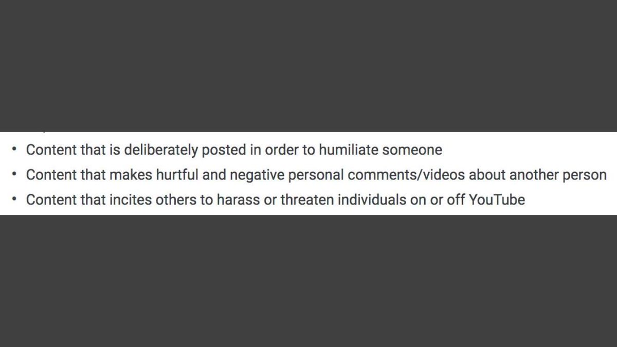 Today has generated a lot of questions and confusion. We know it hasn't been easy for everyone. Going forward, we'll be taking a closer look at our own harassment policies, with the aim to update them. Our thoughts and plans:https://yt.be/help/zxSq
