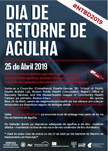 Thursday, April 25th is Boston's first citywide Needle Take Back Day. Let’s work together for proper needle & sharps disposal - keeping them off our streets and out of household trash. Visit http://Boston.Gov/NTBD2019 to find the closest drop-off site near you!