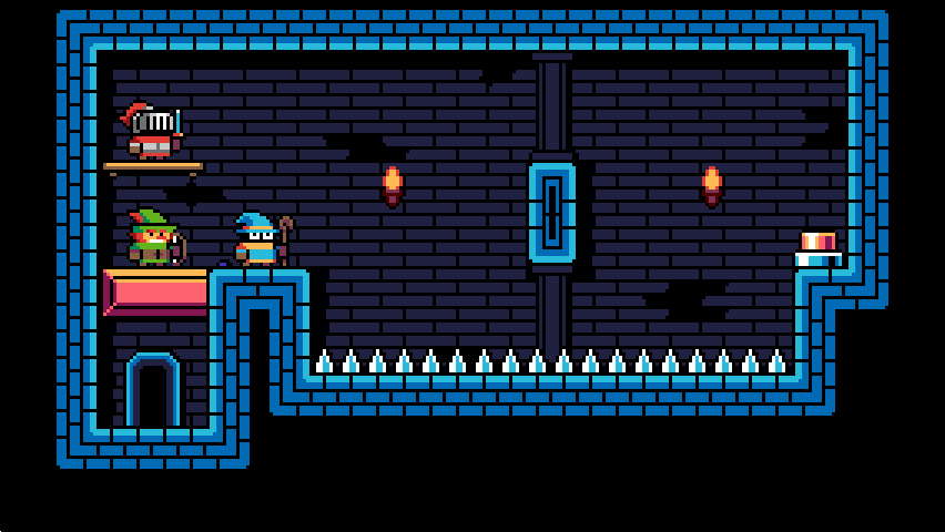 Upcoming changes to Total Party Kill post-compo edition: -WASD and arrowkey controls. Down/S switches hero. Up/W jumps, X/J attacks -infinite jump glitch fixed -mage can no longer push ice blocks with his magic attack -automatic hero switch when dying -new levels! #LDJAM #gamedevpic.twitter.com/bnrz8BLhii