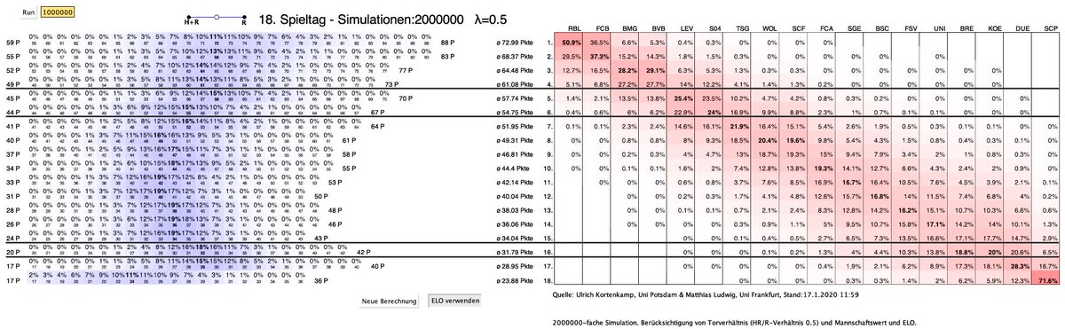 @ukor und@fussballmathe haben mal ausgerechnet wie die zweite Spielzeit der@Bundesliga_DE ausgeht. Grundlage sind ELO-Zahl, Hinrunde und der Teamwert. Schaut selbst unter http://fussballmathe.de .@stiftungrechnen@MNU_BUND@dmv_mathematikpic.twitter.com/cnUXsk1SoT