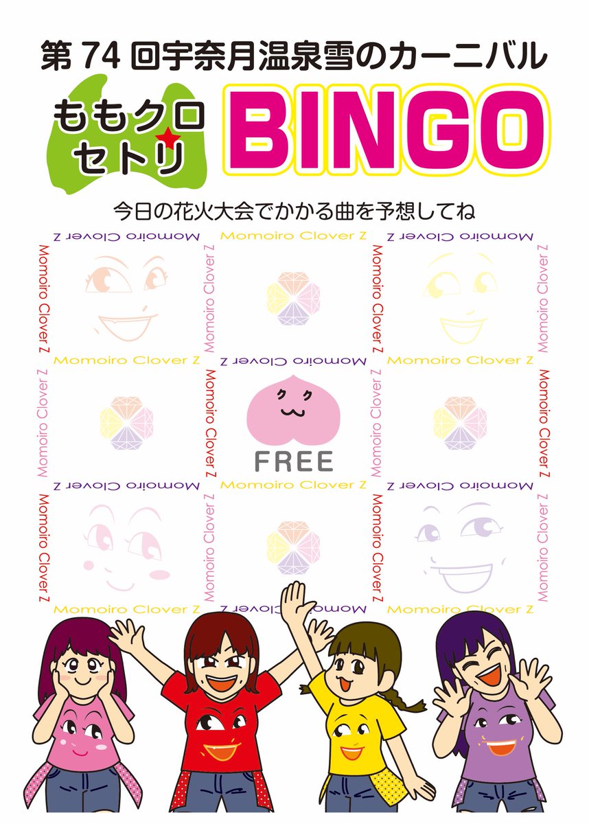 今年もやります!! 【雪のカーニバル セトリビンゴ】 ルールは簡単!ももクロ花火のセットリストを予想して、ビンゴして遊びましょう! 現地へ行かれる方も、在宅の方も一緒に予想してみませんか?