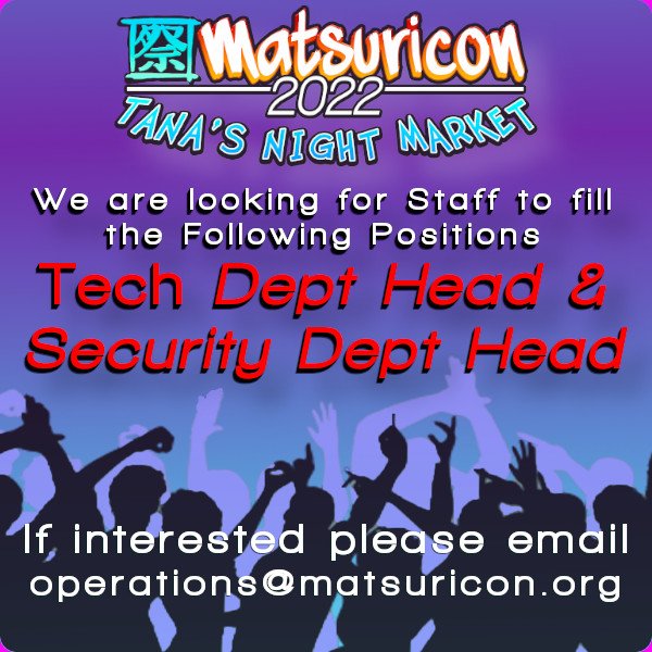 Growth means change and we have volunteer openings for Tech Dept Head and Security Dept Head. If interested please email operations@matsuricon.orgpic.twitter.com/I4TG8DRMcM
