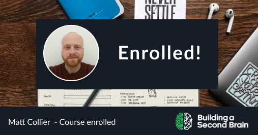 @fortelabs Building a Second Brain course for systemizing my Personal Knowledge Management. Can’t wait to get stuck in. https://www.encode.app/matt/building-a-second-brain …pic.twitter.com/9wAVO94Fp7
