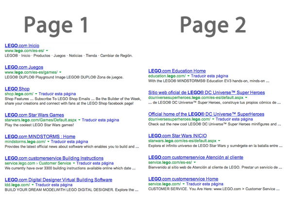 @mattcutts searching LEGO and found 17 first positions for http://lego.com , do you think this is a relevant result?
