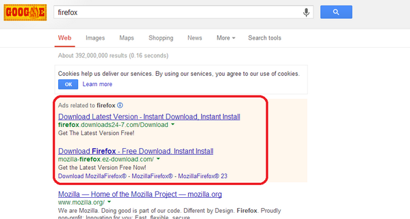 @MattCutts This sort of advert is incredibly misleading - these ads are not Firefox - poor user experience and spammypic.twitter.com/zSct2SL8Kb