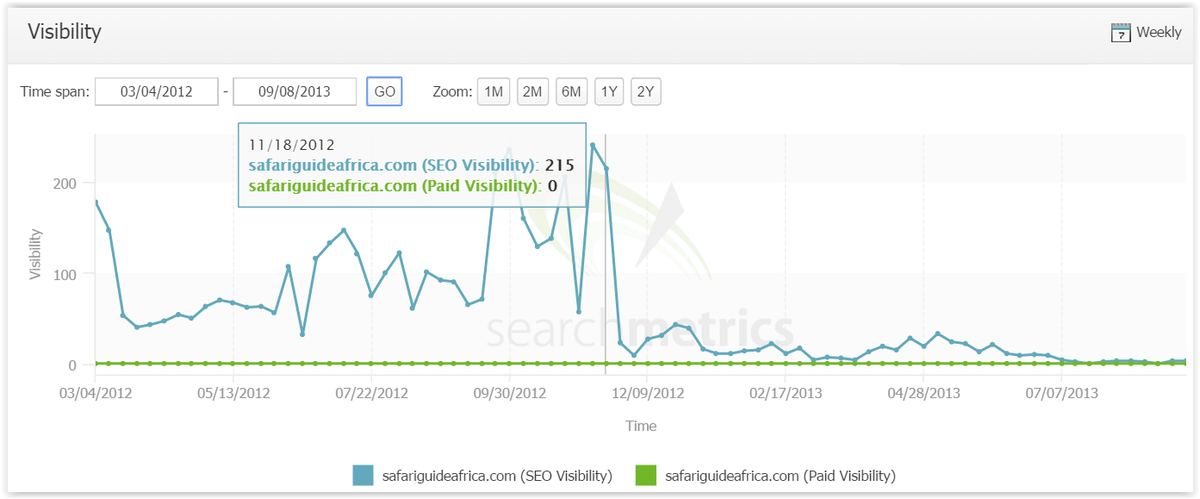 @mattcutts@mathowie@dannysullivan have an effected site 2 that did not recover. Huge visibility drop on 11/11/2012.pic.twitter.com/uGwx888Sgd
