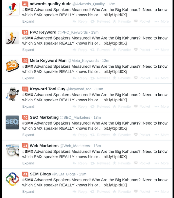 RT @mattcutts: A topical example of how not to do automated social SEO. #smxpic.twitter.com/icXrVZfFoC