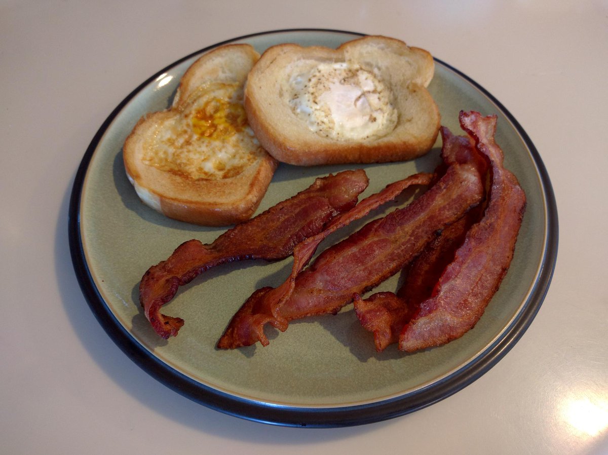 Day 1 of my #30DaysofCooking was Bacon and Eggs in the hole. Mostly working from Bittman's intro to cooking book.pic.twitter.com/7O7aG8b1fD