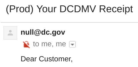 I see 4 problems in your receipt emails 1. Should be encrypted 2. "(Prod)" in subject line 3. Comes from null@dc.gov. Null? 4. sent to+cc mepic.twitter.com/sCWtZa9ngf